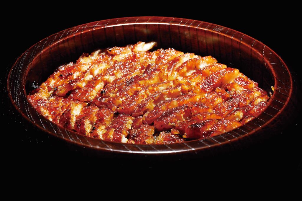 ご飯とご飯の間にまぶした鰻を四分の三匹分と、一番上に丸々一本分の鰻を切らずにそのまま乗せたこれ以上ない贅沢な逸品です。